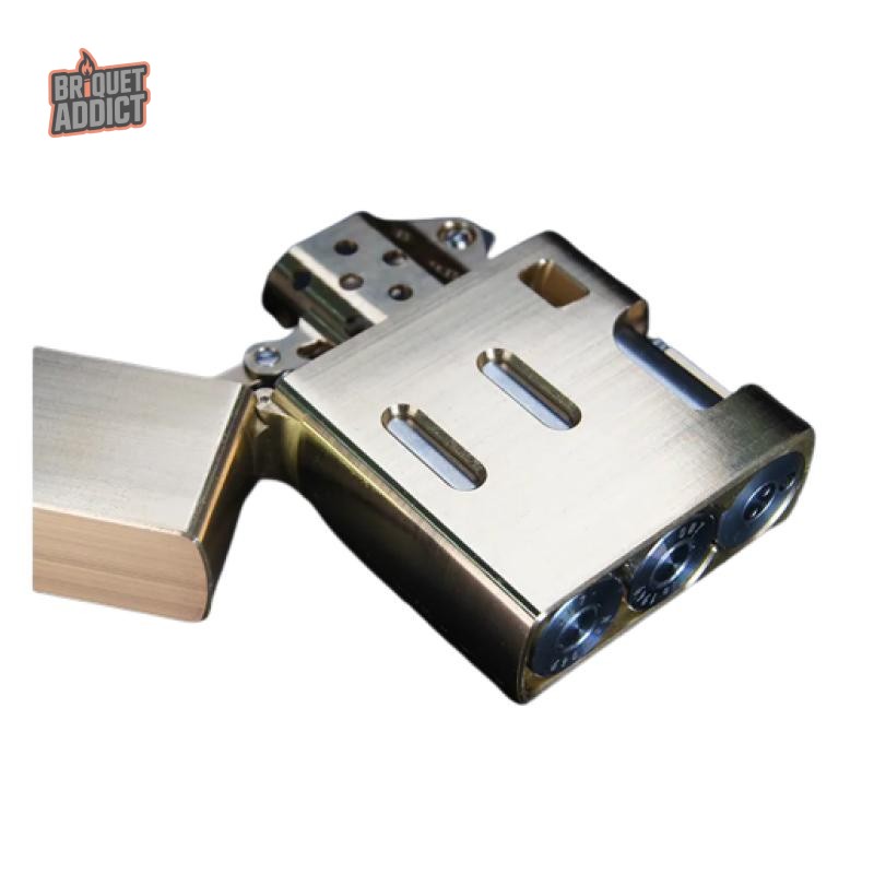 Le Super Briquet se distingue par son design inspiré des cartouches, alliant esthétique et fonctionnalité. Sa coque en laiton et son revêtement en acier lui confèrent une durabilité remarquable, tout en apportant une touche de sophistication à votre quotidien.